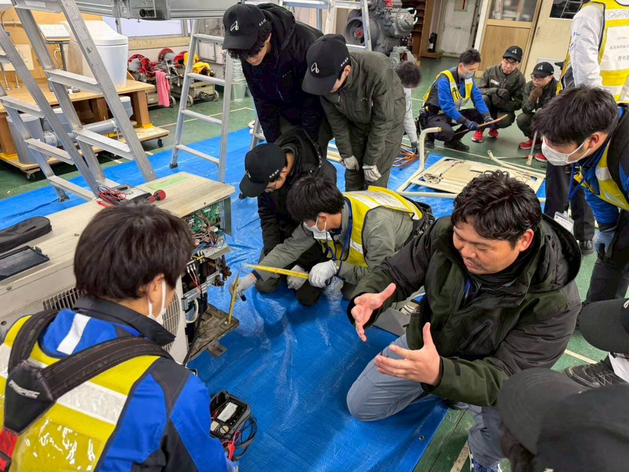 2025年12月16日に、テクノアカデミー会津校にて、学生向けの空調機施工体験学習を実施いたしました。1年生の生徒9名が参加しました。